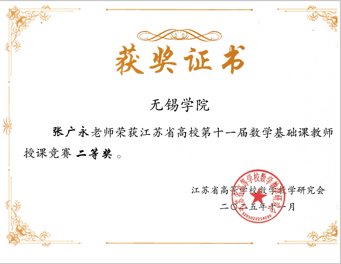 张广乐江苏省高校第九届数学基础课青年教师竞赛三等奖